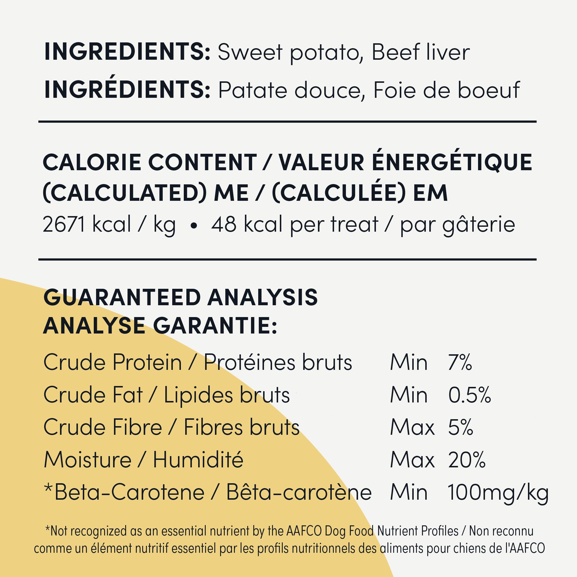 For those dogs who like a little meat, each Sweet Potato with Liver Chew includes a generous coating of liver sprinkles with the same health benefits as our regular Sweet Potato Chew. These natural dog treats will have your dog giving you puppy eyes, no matter the age!