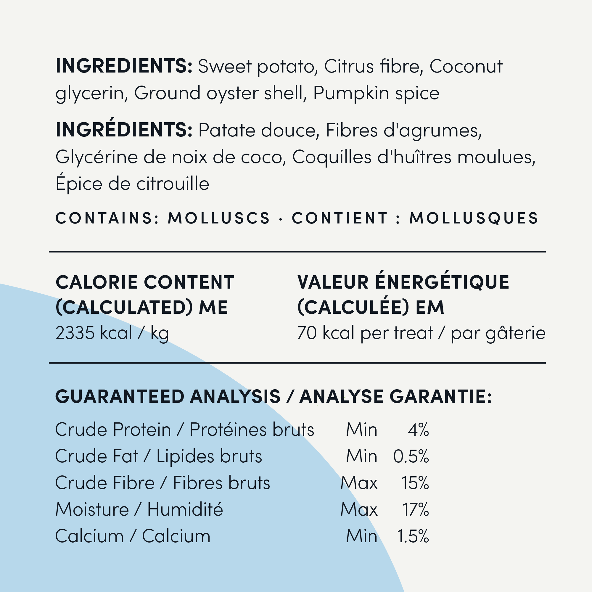 These pumpkin flavoured dental sticks are a great way to make oral care fun for your dog!  A delicious natural pumpkin flavour combined with finely-ground oyster shells to aid in the removal of plaque and tartar build-up on canine teeth.